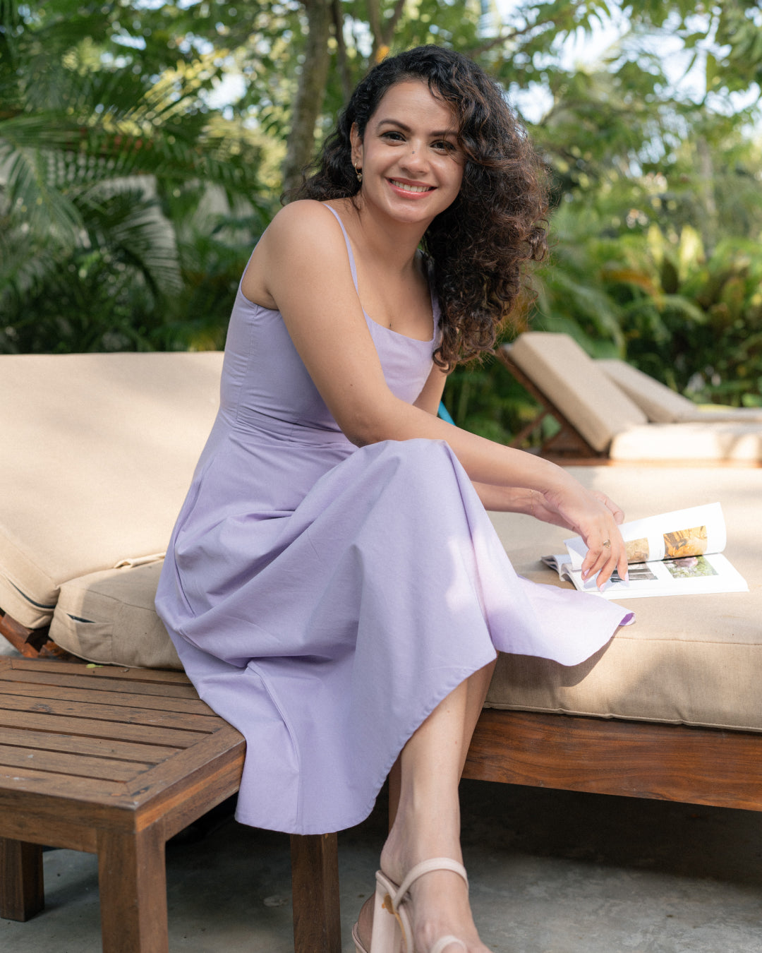 Featuring a flattering square neckline and a gracefully flared midi silhouette, the Purplebell Dress is designed to drape beautifully on every figure. Lightweight and breathable, it’s perfect for sunny days, brunches, or those special occasions where you want to feel effortlessly feminine.