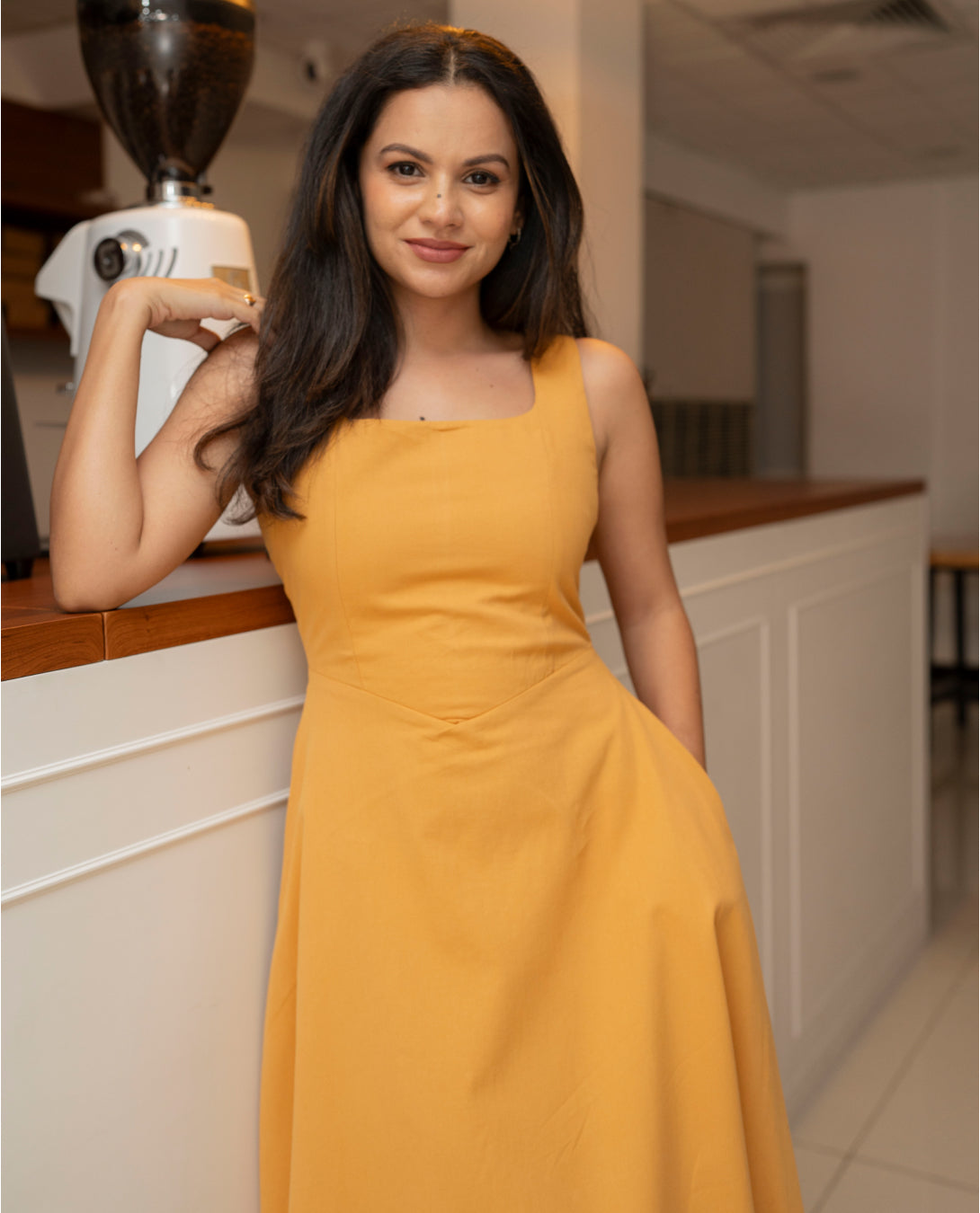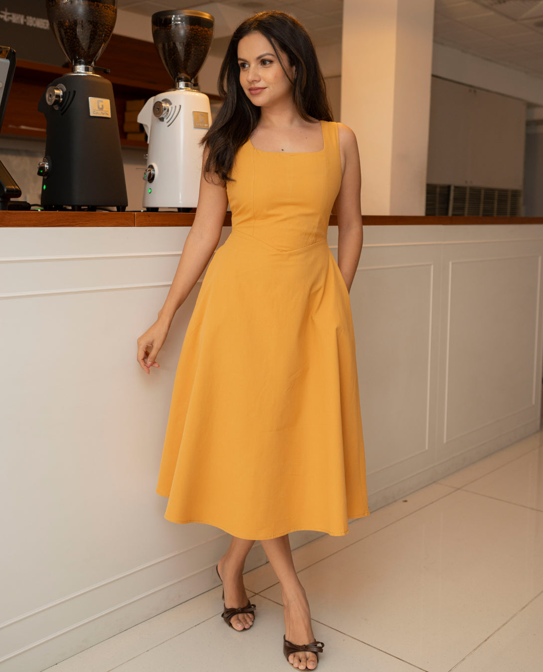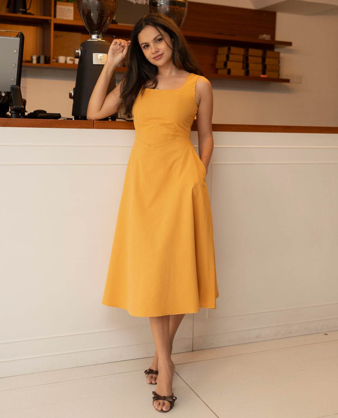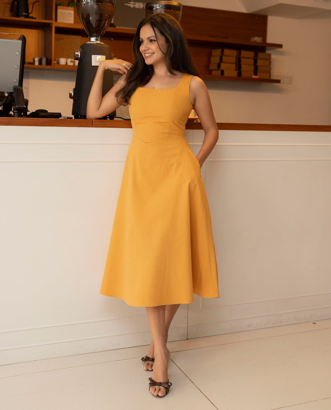Meet the Honeybell Dress — a soft and romantic piece inspired by golden mornings and quiet café moments. Its gentle flare, dainty sleeves, and flattering fit make it your perfect pick for days filled with warmth and charm.