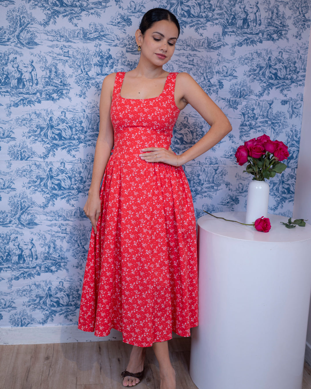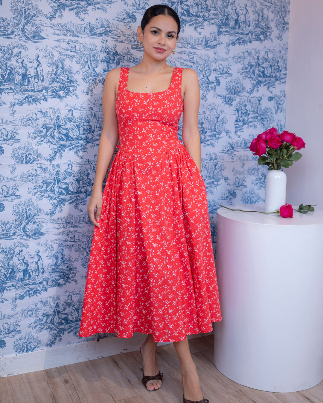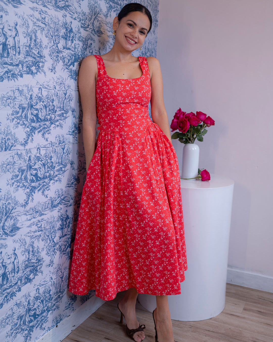 With its structured bodice and graceful midi skirt, Wild Cherry is perfect for brunch dates, casual gatherings, or evenings where you want to stand out without trying too hard.